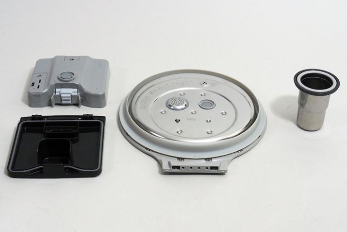 内釜のほかに洗浄するパーツは3点。「うまみ循環タンク」は、分解して洗浄する。中に凹凸はあるものの、洗いづらさは感じず。スチームを用いた炊飯の際は、水容器もきちんと洗おう