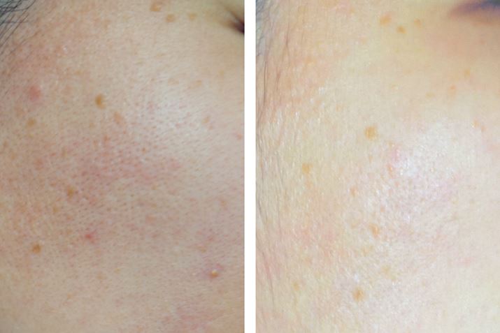 ほおは、吹き出物の痕が少々残っているが、赤色がかった肌荒れがかなり改善! 頬の毛穴もずいぶん目立たなくなってきたように思います
