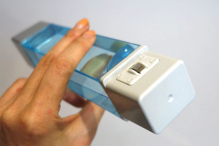本体手前の操作ボタン1つで全操作が可能。モードを変更するとLEDライトの色が変化し、現在どのモードか目視できてわかりやすい