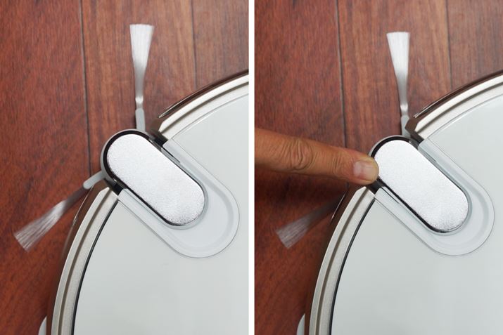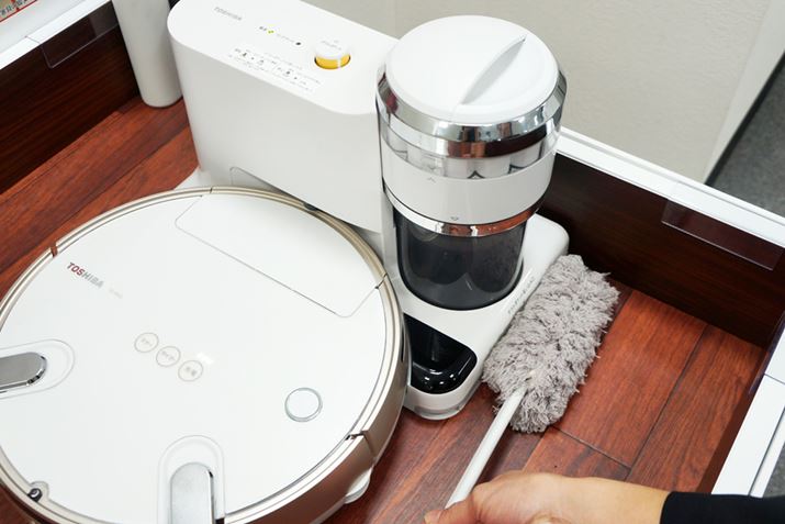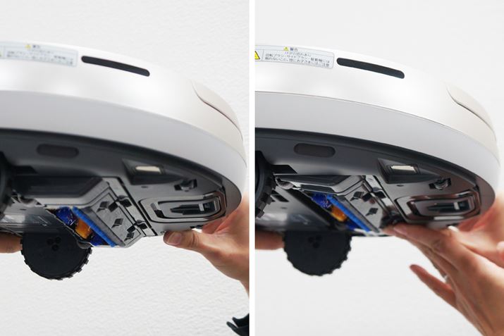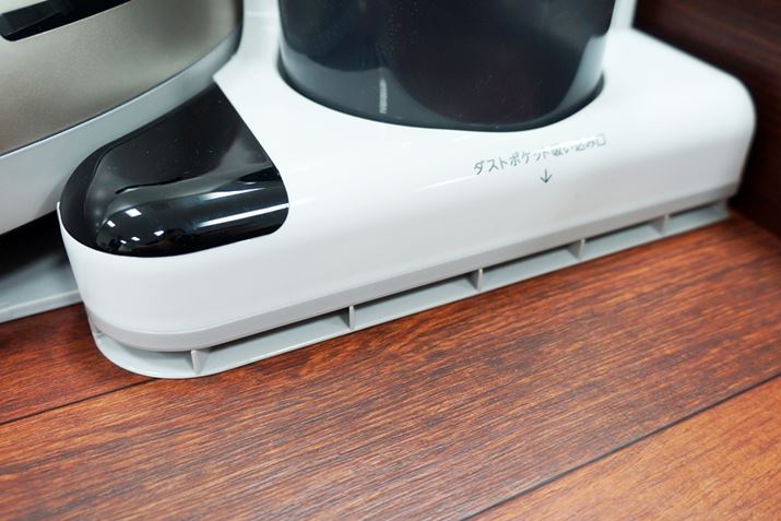 そして、ダストステーションには本体のゴミを集める以外にもう1つ便利な機能が用意されている。ダストカップがあるほうの下部に吸い込み口「ダストポケット」があり、ゴミを吸引してくれるのだ。とはいえ、ダストステーション周囲にあるゴミを除去するのではなく、フロアワイパーなどで集めたゴミを吸い込むためのもの。ロボット掃除機が入れない家具のすき間や、走行することができない棚の上を人の手で清掃した際に出るゴミをダストポケットで吸い込み、キレイにしようという発想だ。
