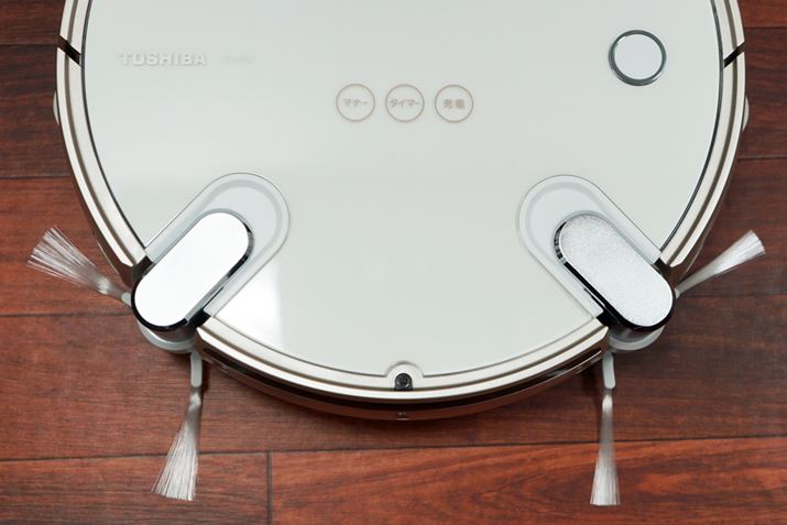 掃除の質を高めるために、まず強化されたのが壁際にあるゴミの捕集。前モデルでも壁際を判断すると走行スピードを落とし、赤外線距離センサーで壁との距離を2cm以下にして掃除する仕様となっていたが、VC-RVS2は従来よりもサイドブラシを延長化したことでより隅に届きやすくなった。