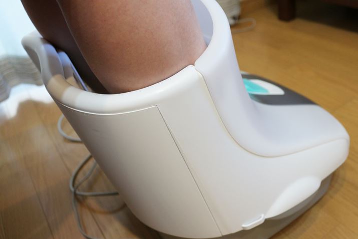 温浴中はスチームや熱を逃がさないために、ひざ下と本体の口をバスタオルで覆うように巻きます。運転を開始すると20秒ほどで本体内にスチームが充満。ミストサウナに入っているような気持ちよさがひざ下を包みます。「標準」モードでも十分効果を感じますが、たしかに「しっかり」モードのほうが「標準」モードより温まるのが早く感じました。