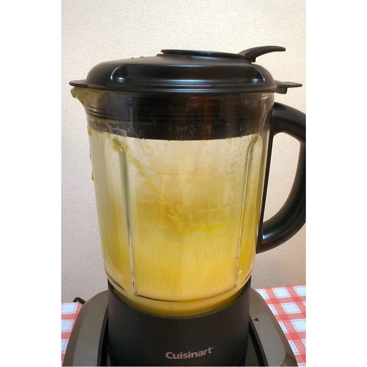 続いて作ったのは、カボチャのスープ。こちらは牛乳で作りましたが、1歳になる前の赤ちゃんには、水かフォローアップミルクを使ったほうがいいでしょうね。そして前回同様、具材を大きく切ってしまったため、今回は完成時につぶつぶが残ってしまいました。そこでもう1コース追加したところ、無事なめらかなスープに仕上がりました。