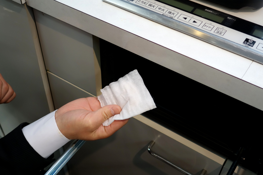 サンマを焼いた後の庫内をウェットティッシュで拭いたところ。ほとんど汚れがついていないのがわかる
