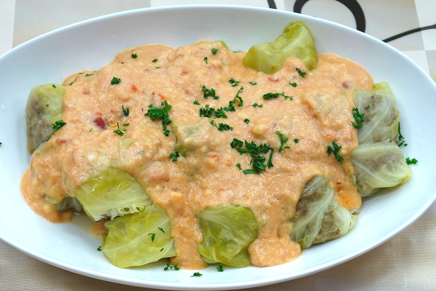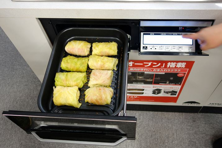 ホワイトソースと平行し、グリル部ではロールキャベツを調理。説明会後半では「ロールキャベツのホワイトソースがけ」として試食もできた