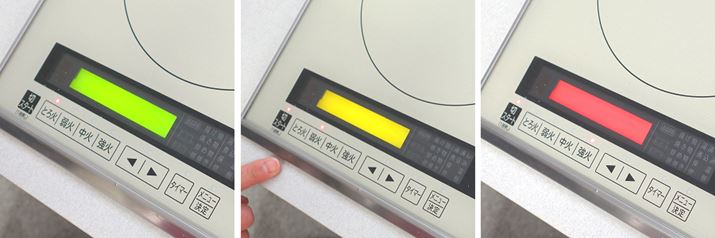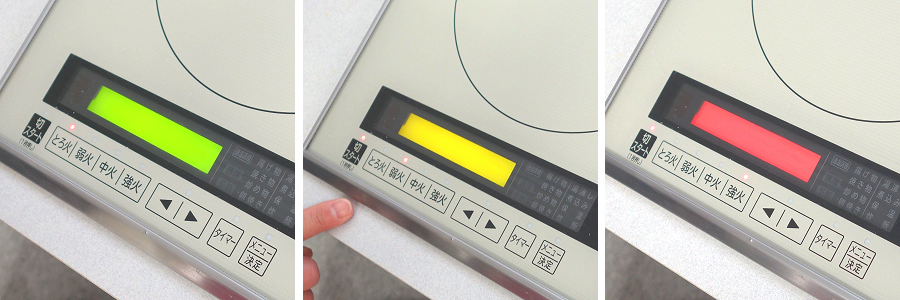 火力に合わせて液晶の色が変化。ちなみに、火力は12段階で調整可能(中央は10段階)で、「強火」ボタンを1秒長押しすると最大火力にできる