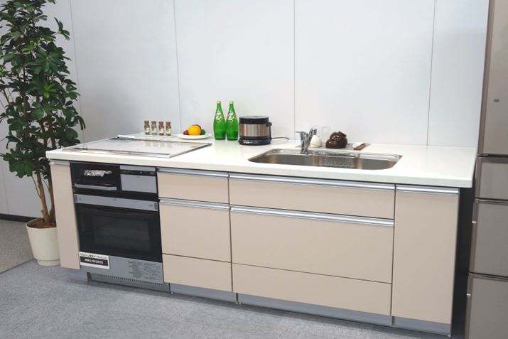 今回説明会で使用した製品は、最近のキッチンに多い人口大理石に合わせたパールホワイトを使用。このほか、ステンレスカウンターになじむメタリックグレーも選択できる。