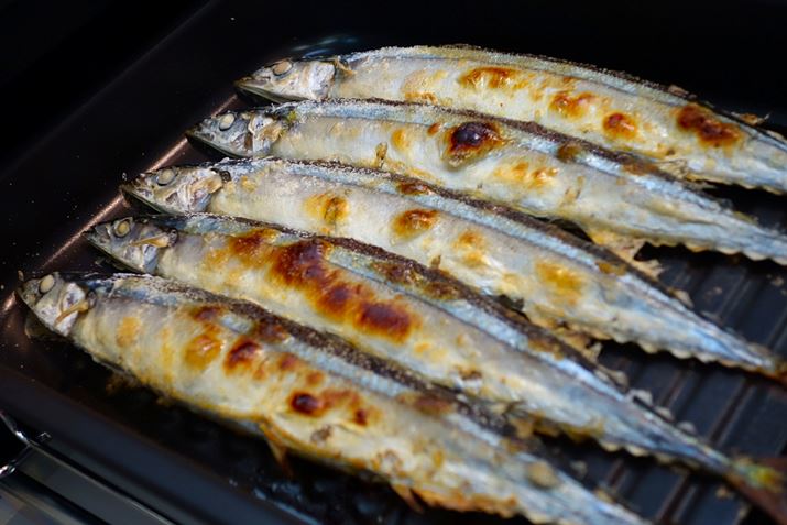 写真は「快速」モードで焼いたサンマ。写真上が表、写真下が裏面。両面焼き対応なので、魚をひっくり返さなくても裏までコンガリ焼きあがる