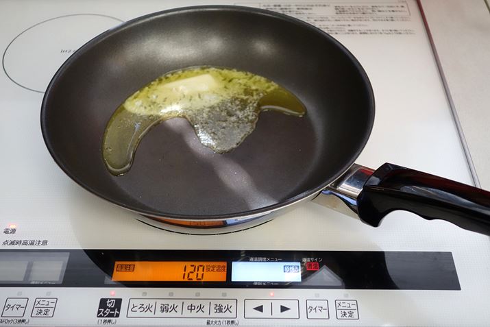 120℃調理ならばホワイトソースも失敗しにくい。5分近く放置したバターも焦げていなかったのには驚き