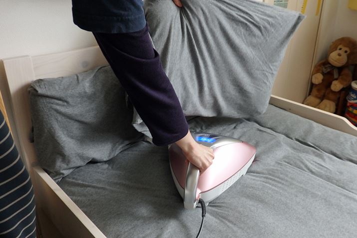 「ランプが青色になったら移動」を意識しながら、布団全体にMC-DF500Gをすべらせていく。ランプに注意しながら掃除したので、いつもよりも長めに掃除機がけしてしまった
