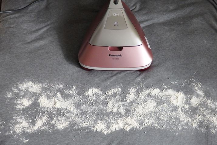 本体の軽さやモーター式のブラシの効果もあり、操作性は上々。押し引きに関わらず、スルスル動く印象だ。だが、少し気になっていることがある。それは、吸込口のサイズ。一般的な布団掃除機に比べて小さいように感じる。本体幅は29.2cmあるが、吸込口は3cmほど(筆者測定)。「本体が通過した部分は掃除した」という認識になりやすいので、できるだけ本体幅に近い吸引を望みたい。そこで、どの程度吸じんしているのかをテストしてみた。