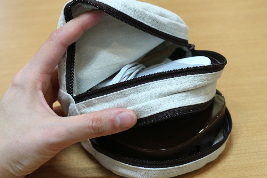 本体とパッドを収納できる専用ポーチ付きで旅行にも便利