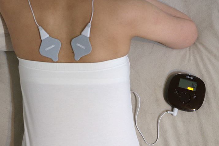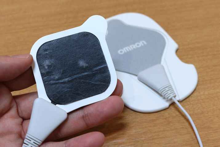 HV-F320は、粘着性のあるパッドをコリや痛みが気になる部分に貼り付けて使用。パッドから筋肉に低周波(弱い電流)の刺激が流れ、コリや痛みを治療します。満充電の状態から4回(1回30分)ほど運転可能。動作音はほとんど出ないので、寝室など静かな場所でも使えます。
