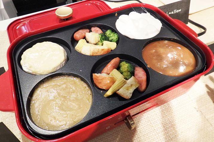 マルチプレートを利用すれば、チーズやチョコなどいろいろなフォンデュを一度に楽しめる