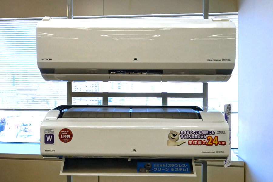 日本の住宅では、6〜8畳タイプの寝室や勉強部屋は、壁の一部がクローゼットになっていたり、背の高い家具が置かれている場合が多い。このため、エアコンを設置できるスペースが「窓の上」であるケースがよくある。しかし、窓の大型化や集合住宅に多い釣り天井などの存在により、エアコンの設置スペースは年々狭くなっているという。このため、最近各メーカーが発売しているのが「スリムタイプ」とよばれる、高さをスリム化したエアコンだ。