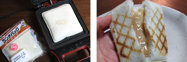 耳までプレス……といえば「ランチパック」。ただ思いつきでキルトに挟んでみたところ、温かい分甘みが増してかなりヘビーな感じに(甘いものが好きな方なら美味しいはず!)