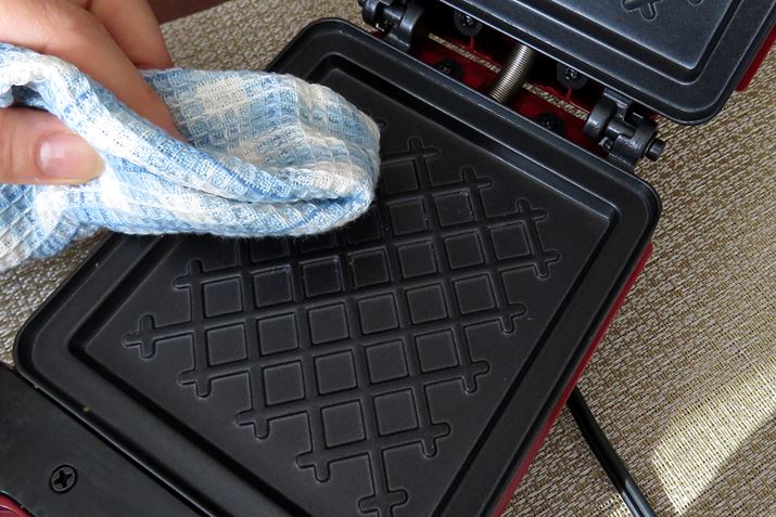 プレートは固定式で水洗い不可だが、汚れがこびりつきにくいノンスティック加工が施してあるので、軽めの汚れなら乾いた布でサッと拭き取れる