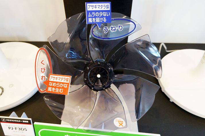 なお、アサギマダラ蝶の羽を応用したネイチャーウイングと、送風と一緒に放出されるプラズマクラスターの相乗効果により扇風機の風を長時間浴びた際に感じる「だるさ」を抑えられることが研究機関において実証された。だるさ感は、風で体の熱が奪われるとともに肌表面の水分が低下することによって血流が悪くなるため起こると言われている(メーカー談)。なめらかな風とプラズマクラスターイオンを取り囲む水分子による保湿で、だるくならずに済むのだそう。
