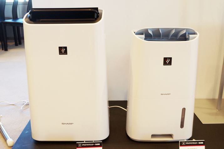 リビングやサニタリールームの湿度を除去するだけでなく部屋干しにも役立つ除湿機は、除湿可能面積15〜30畳の大容量タイプ「CV-F120」と9〜18畳のコンパクトタイプ「CV-F71」の2機種を用意。両タイプともプラズマクラスターイオンを放出することで付着カビ菌の増殖を抑えるとともに、部屋干し衣類の生乾き臭、付着臭を消臭する。