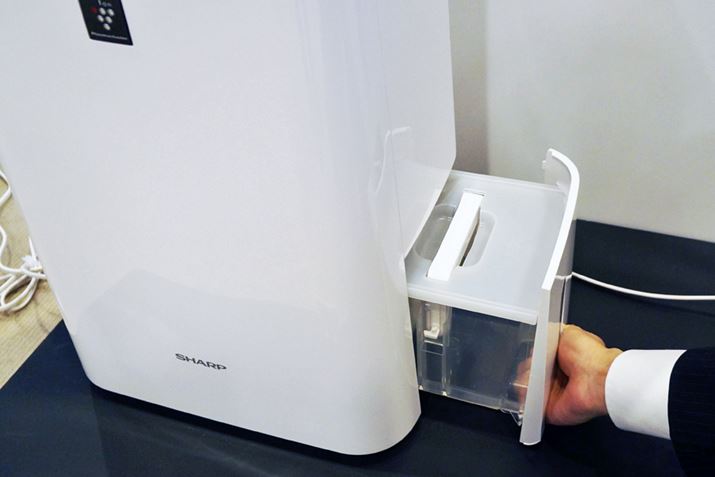 排水タンクの容量は約3.1Lで、満水になると運転が自動停止する。また、市販のホースを装着すれば連続排水も可能