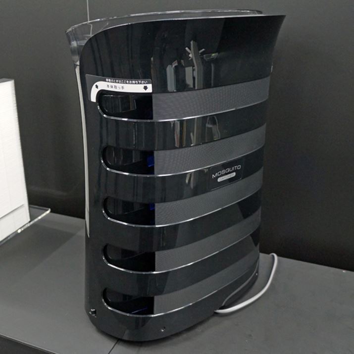 まず、本体に蚊の習性を利用した機構を施すことで、UVライトで誘い出す(虫は紫外線に集まりやすい)→黒いボディに寄ってくる(蚊は黒色を好む)→本体に用意された小窓に誘い込む(蚊は物陰に隠れたがる)といった流れで蚊が空気清浄機に近づくという。その状況になれば、空気清浄機の吸引力で蚊は本体内引き込まれる。吸い込んだ蚊を逃がさないように、内部には粘着シートも装備されている。