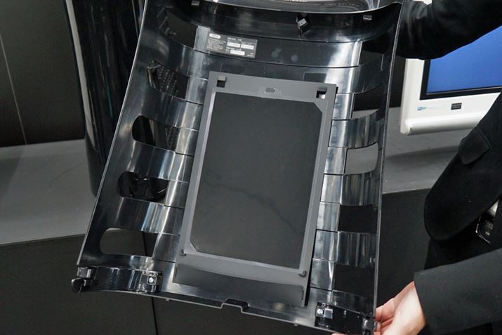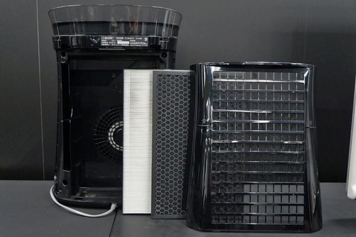 吸い込まれた空気は、プレフィルター→脱臭フィルター→HEPAフィルターを通ってろ過される。HEPAフィルターには静電気を帯びさせているので、浮遊物が吸着しやすいという