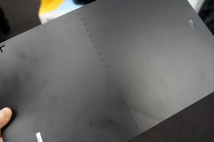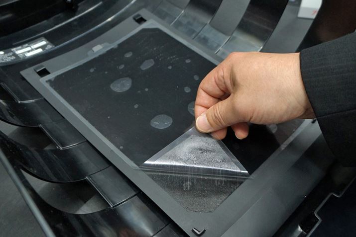 購入した粘着シートにはフィルムが貼られているので、めくって使用する。粘着面を触ってみたところ、指にベタベタするものが付くほど強力だった