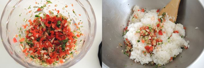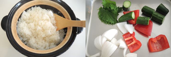 (6)カットした食材をボウルに取り出し、冷ましておいた酢飯と混ぜ合わせましょう。