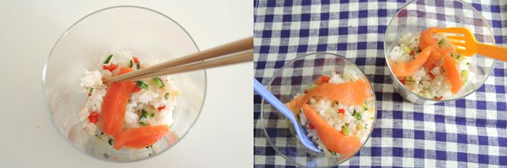 今回は、フィリップス「マルチチョッパー」を使った彩り鮮やかなライスサラダのレシピをご紹介。野菜をチョップして酢飯と混ぜるだけなので気楽に作れますよ。チョップする材料は、ゆで卵や紫キャベツ、セロリなどもおすすめ。今回はスモークサーモンを合わせていますが、しっかり味付けした焼き肉や唐揚げもとてもよく合いますよ。