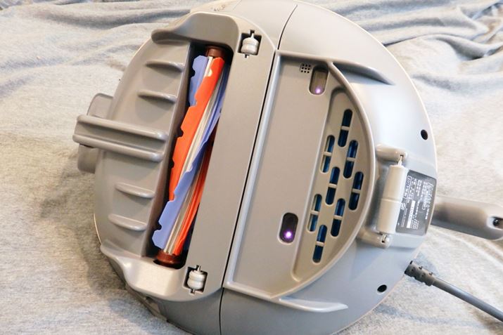 叩くための専用パーツを装備するふとんクリーナーもあるが、EC-HX150はゴム製の回転ブラシが叩く役割を果たす。ブラシのブレードの枚数が前モデルの倍になったことで、振動数も2倍になった