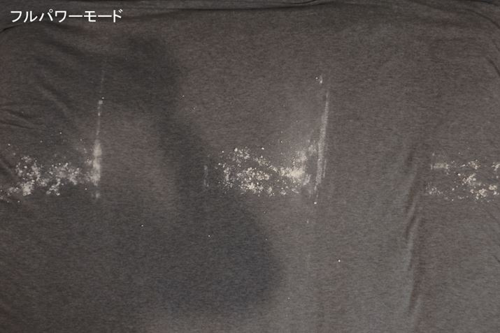 叩く振動が大きいためか、フルパワーモードでは周囲に小麦粉が撒き散らされてしまった。しかし、その上を通過させればしっかり吸い取れるので問題はないだろう