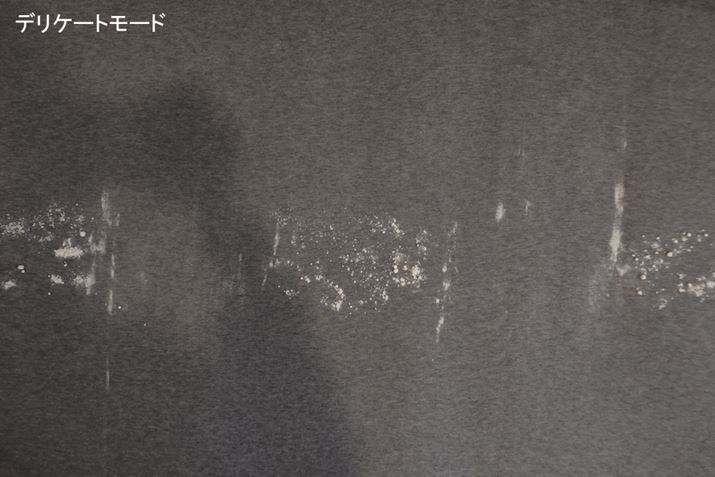 パワーが弱くなるデリケートモードの場合、往復した道に少し小麦粉の残留が見られた。傷みやすい寝具では安心できるモードだが、ハウスダストを取るという意味では自動モードをメインで使うほうがいいかもしれない