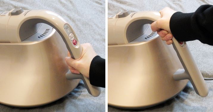 EC-HX150は2つの握り方でハンドルを持つことができる。ベッドや床に敷くタイプの布団といったケースにあわせて、持ち方を変えるとラクに操作できるだろう