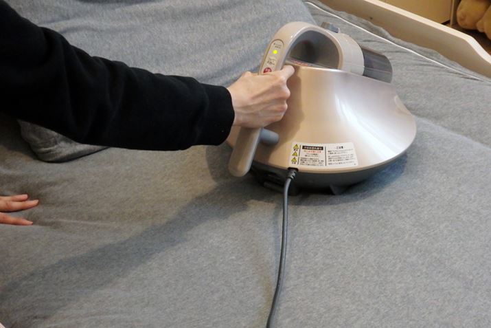 上の検証結果で1往復だけでも高レベルの吸引力を確認できたが、実際に日々の中で使用した使いやすさやゴミの取れ具合も気になるところ。今回は、自動モードでシングルサイズの綿布団を掃除してみる。