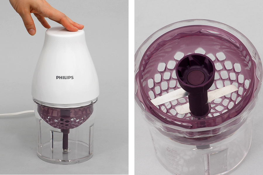 ニューヨークで流行中の「チョップドサラダ」。 これは、たくさんの種類の野菜をほぼ均一のサイズにみじん切りにし、“スプーンですくって食べる”という新スタイルのサラダで、食べやすさと、大量の野菜を摂取できることで忙しい層に受けているのだ。「マルチチョッパー」はその新感覚サラダを手軽に作れる画期的なフードプロセッサー。一般的なフードプロセッサーと大きな違いは、穴の開いた特種設計のバスケットと、3枚刃の専用ブレード、そして、毎分約1,500回転の低速速回転。これらの効果により、これまでのフードプロセッサーでは実現できなかった“均一サイズのシャキシャキみじん切り”、つまり、チョップドサラダに最適なカットができるようになっている。付属のブレードを付け替えることで普通にコンパクなフードプロセッサーとしても使えるのがポイント。