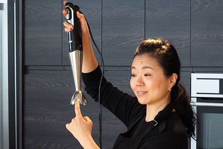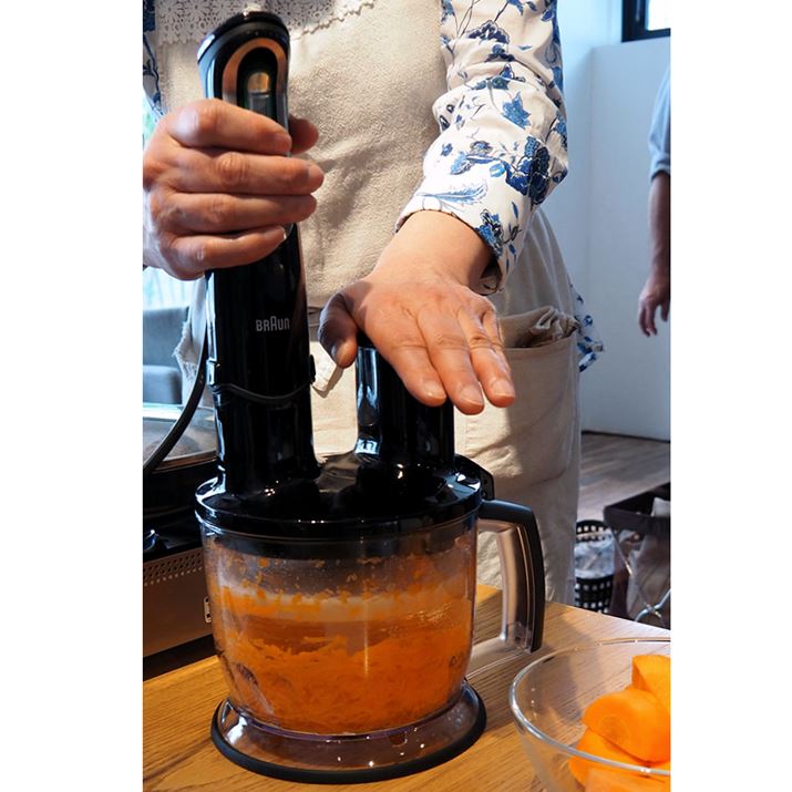 レッスンの最初にふじわらさんから「ハンドブレンダーが家にある人はいますか?」という問いがあり、約半数が挙手。しかし「週に3度以上使用している人」という問いには、誰一人手をあげませんでした。じつは、日本でハンドブレンダーを購入する多くの割合が「子供の離乳食」用。子供が成長すると、使用するのをやめてしまう人も多いのだとか。とはいえ、今回の教室でわかるように、じつはハンドブレンダーは毎日の料理にも便利な調理器具。時短はもちろん、洗い物や手間も減らせるので、忙しい主婦にこそ本当は使ってほしい調理器具なのだそう。