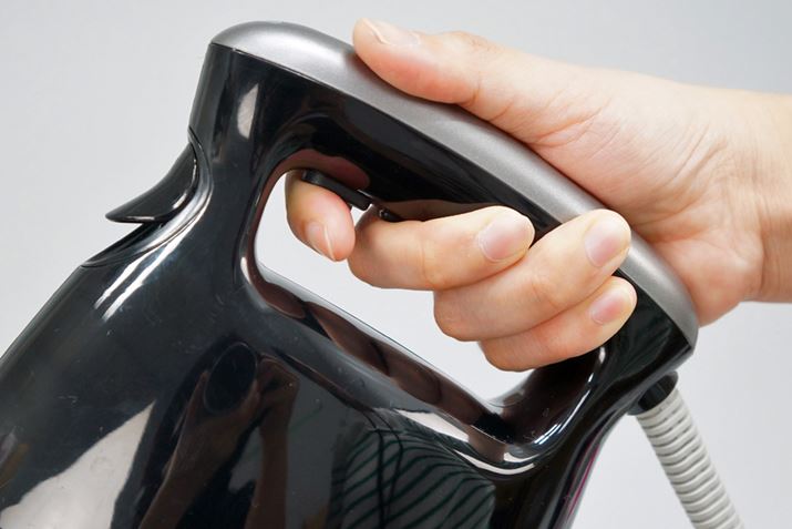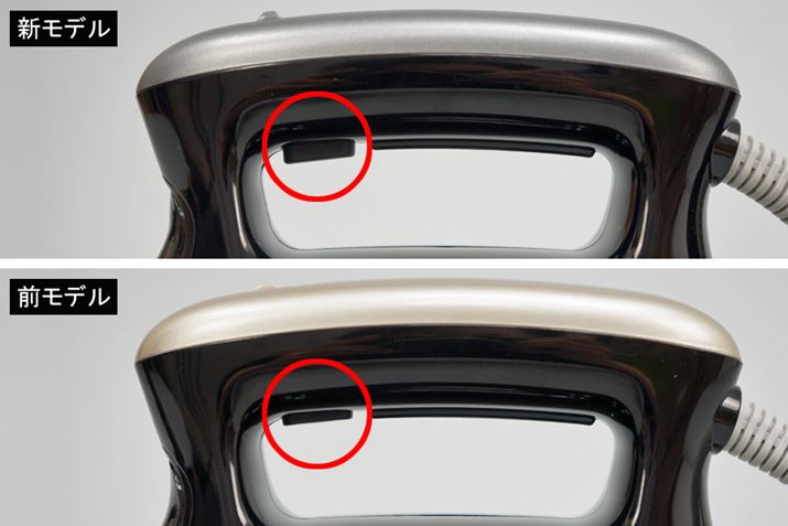 ボタンを押している間だけスチームが出る仕様なため、ハンドル部分にボタンを装備。前モデルより2mm高くなっただけだが、使いやすさが違うという