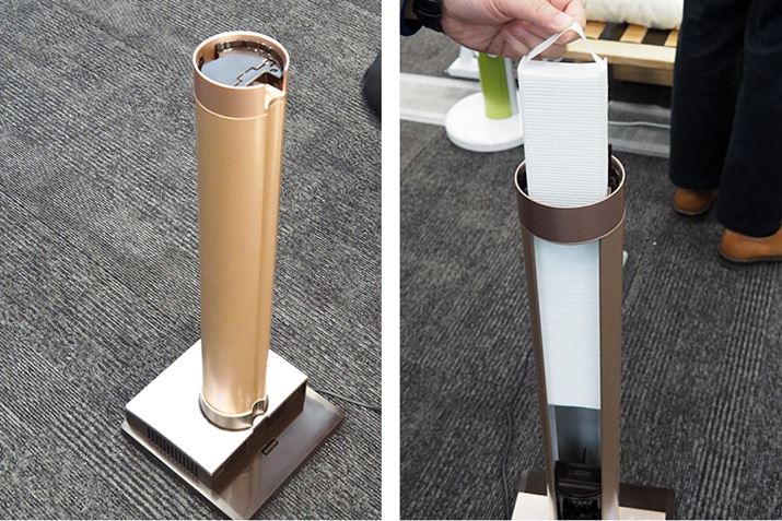 iNSTICKシリーズといえば、充電台が空気清浄機になるコードレススティッククリーナー。スタイリッシュな独特の形状と、クリーナーに空気清浄機という2in1機能が人気の製品。旧モデルとの違いは、前述した「ふとん専用アタッチメント」が付属したほか、ハンドル部に軟質グリップを採用することで握りやすく。さらに、空気清浄機能に脱臭フィルターが追加され、ニオイの抑制にも力を発揮するようになった。このほか、使い勝手を向上させるさまざまな機能を追加しているという。