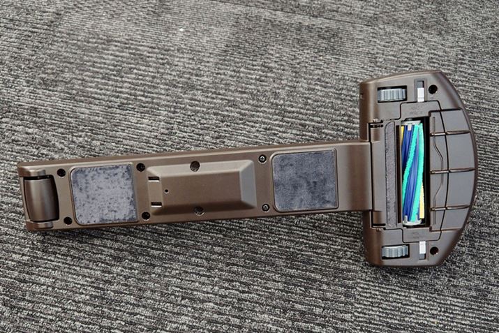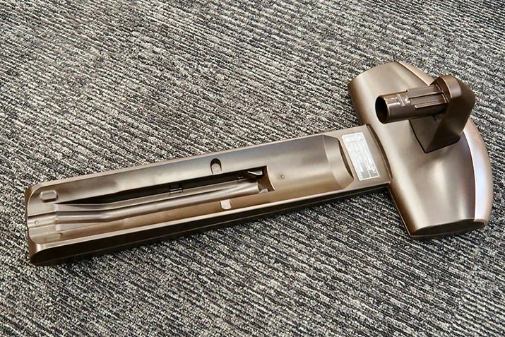 ヘッドの先端側には厚さ数ミリのスリットを配置してあり、髪の毛などの長いゴミも吸い込みやすくなっている
