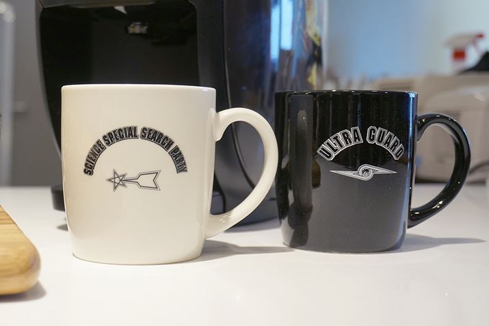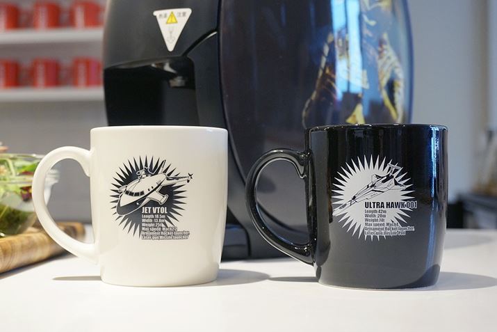 同梱する2つのオリジナルマグカップには、それぞれ「ジェットビートル」(左)と「ウルトラホーク1号」(右)のイラストが入っています