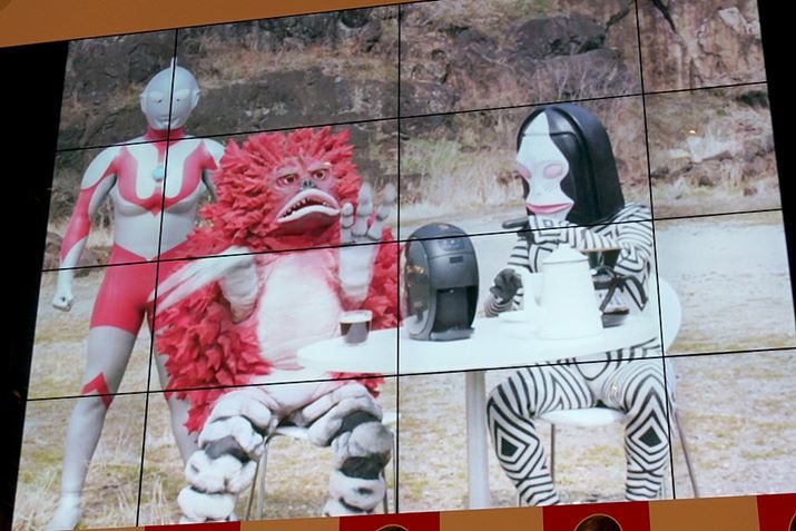 また、「ネスカフェ ゴールドブレンド バリスタ ウルトラマンコラボ」特設サイトでは、ウルトラマンや怪獣たちが登場するスペシャルムービー「ネスレ ウルトラファイト」「ネスレ ウルトラクリーニング」など、4本の動画を公開しています。1970年代に放送された「ウルトラファイト」風の、コミカルな映像となっているとのこと。発表会では、「ネスレ ウルトラファイト」編が上映されました。「バリスタ」を使う怪獣たちがかわいい!