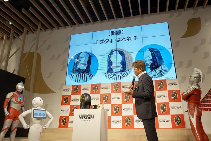 東京・ネスカフェ原宿にて行われた「ネスカフェ ゴールドブレンド バリスタ ウルトラマンコラボモデル」の発表会では、ウルトラマンとウルトラセブン、それに、子どものころからウルトラマンが大好きという哀川翔さん、ロボットのPepperが駆けつけてくれました。発表会では、Pepper による、「ウルトラマン」と「バリスタ」にちなんだクイズバトルも行われましたよ。
