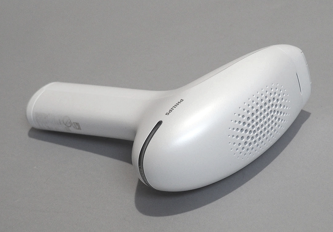 SC2009/70は、本体を正しい角度にセットし、背面の「Ready」ライトが緑に光ると照射準備完了です。また、使っていて非常に便利に感じたのが、ボタンを握ったままで本体をスライドさせると、一定間隔で自動的に光を照射してくれる「連続フラッシュ機能」。一般的な光美容器は「肌にあてて、角度を調整して、ボタンを押して、肌から離して、次のエリアにあてて……」と、面倒な工程が必要ですが、SC2009/70なら「ボタンを握ったまま、約1cmずつスライドさせるだけ」と、かなり手軽です。