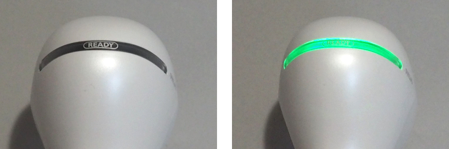 正しい角度で肌にあてれば「Ready」ライトが点灯する仕組み