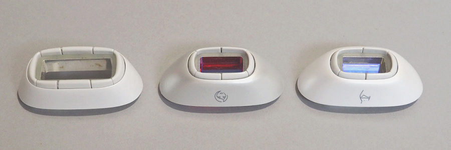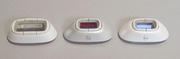 左から標準、顔用、そしてビキニライン用のアタッチメント。顔用とビキニライン用は上部のアイコンマークで区別できるようになっています