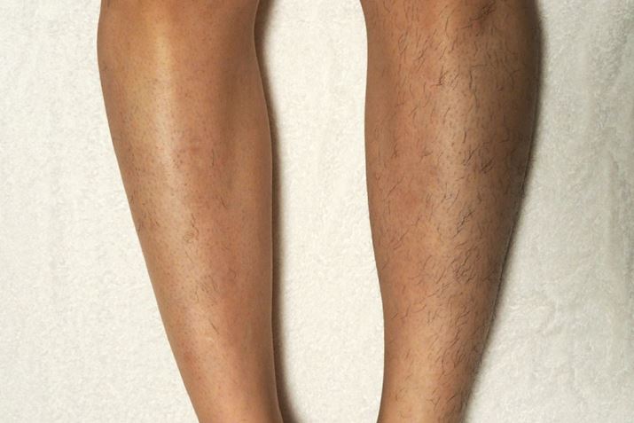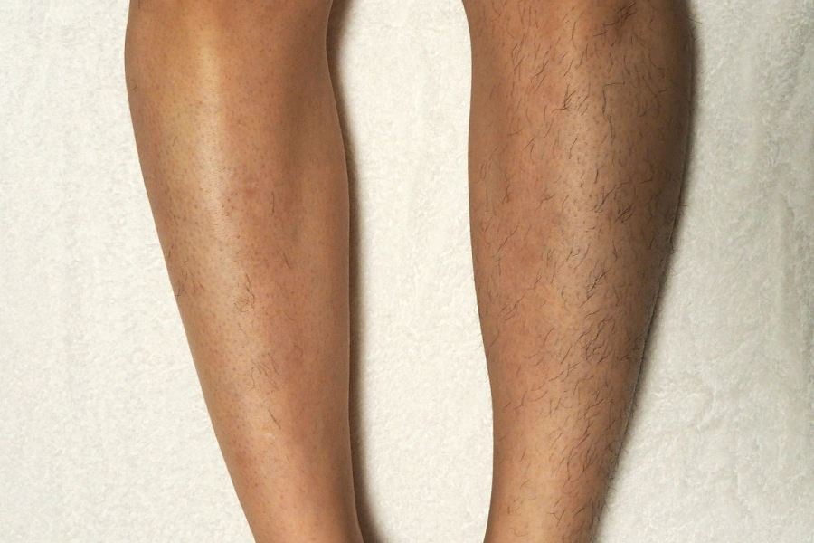 1か月間に2回、両足のスネ毛を剃り、右だけSC2009/70を照射。1か月半後、スネ毛のようすはこれだけ差が出ました!