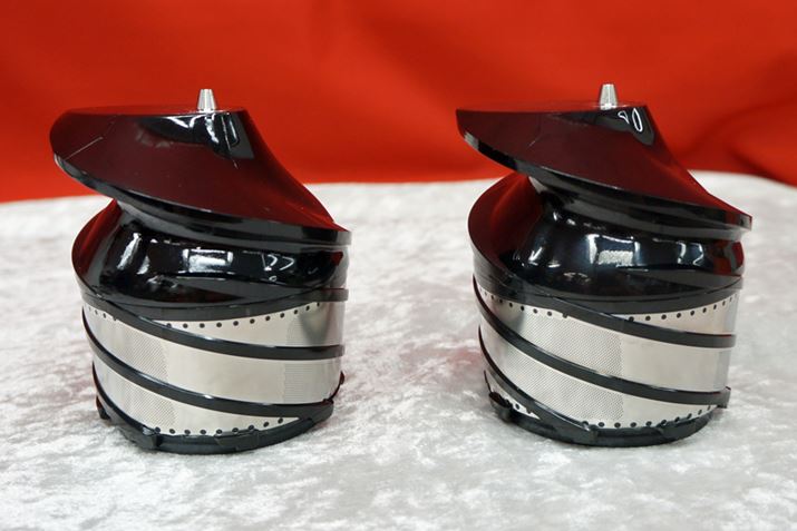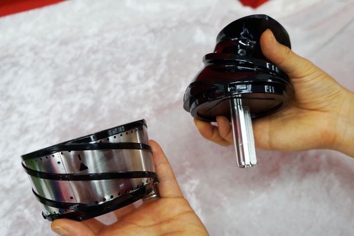 野菜や果物を絞るためのスクリューは、グリーンプレッソもジュースプレッソも同じ。1分間に32回転という低速で食材を押しつぶす