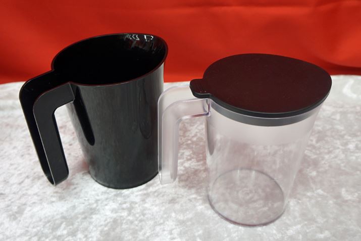 本体から排出されるジュースや絞りかすを受けるためのカップは、前モデルのジュースプレッソのものよりも400mlコンパクト化した容量1Lになった。フタも付いているので、そのまま冷蔵庫で保存もしやすい