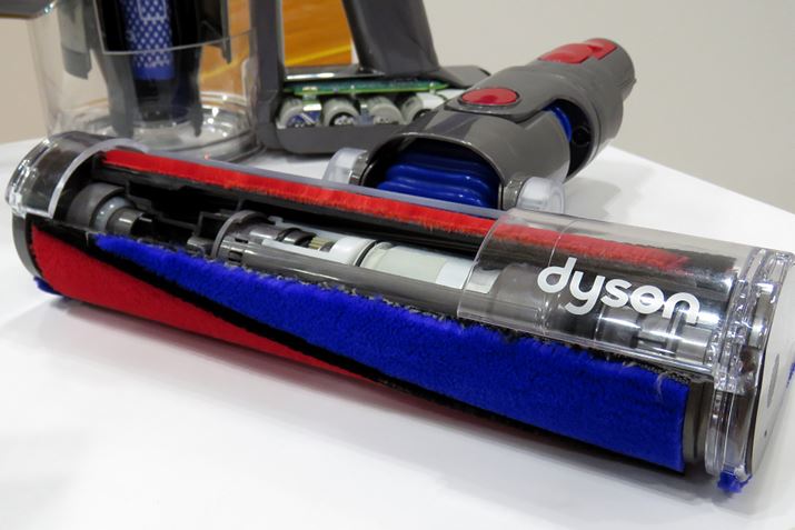 実験時はこのフワフワの「ソフトローラークリーナーヘッド」を装着(アニマルプロ以外は付属)。ナイロンフェルトにより大小のゴミを捕らえカーボンファーバーブラシ(黒い部分)により静電気を抑えるため、微細なゴミまで取り除けるのだという。ヘッドには専用モーターを搭載