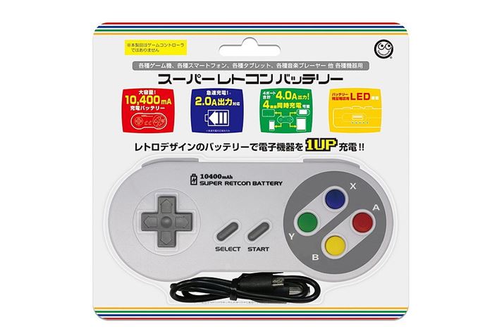 えっ、スマホのゲームにスーファァミのコントローラー使ってるの!? って驚いてしまうようなゲームコントローラーのデザインを模したモバイルバッテリーです。カバンから取り出すだけで人気者に……!?